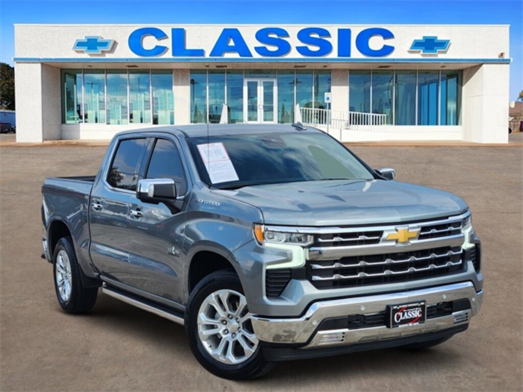 Certified. Sterling Gray Metallic 2023 Chevrolet Silverado 1500 LTZ Tech & Convenience II Package RWD 10-Speed Automatic EcoTec3 5.3L V8 10-Speed Automatic, Jet Black Leather.