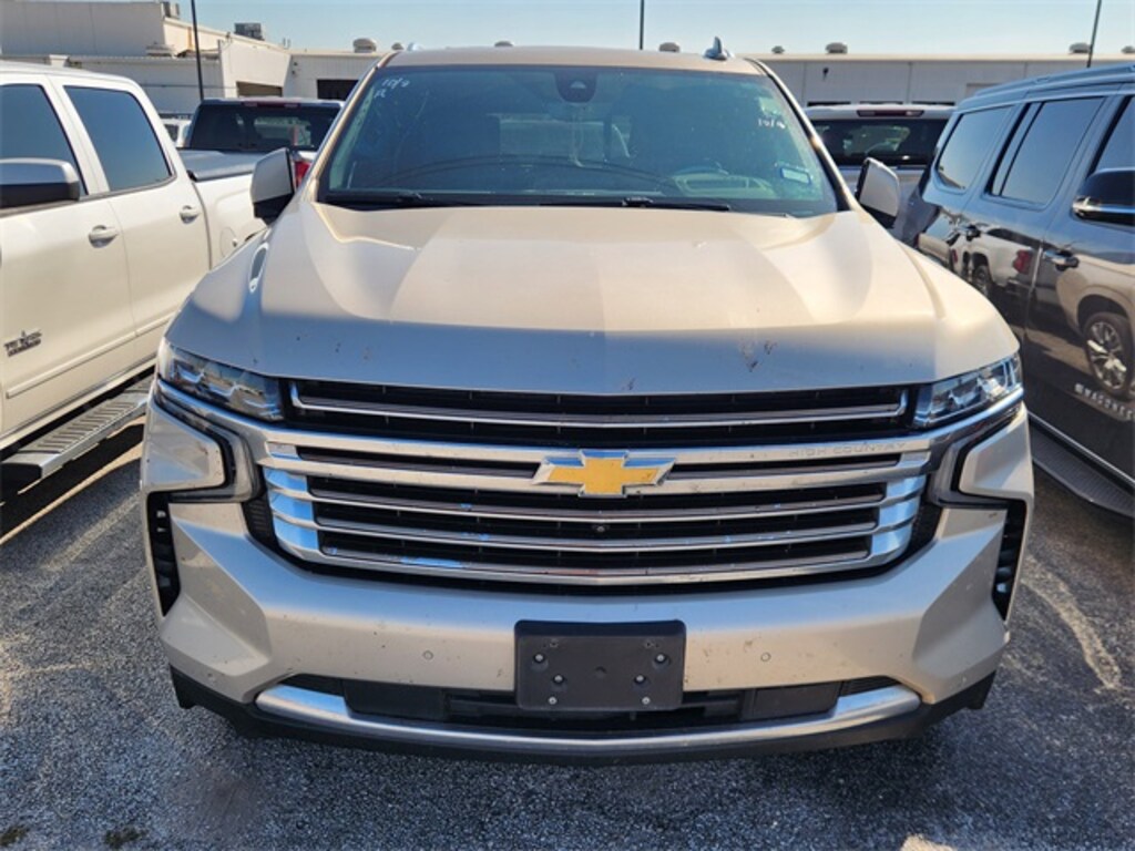 CARFAX One-Owner. Clean CARFAX. Empire Beige Metallic 2021 Chevrolet Tahoe High Country RWD 10-Speed Automatic with Overdrive EcoTec3 6.2L V8 LOCAL TRADE, CARFAX 1 OWNER, NON SMOKER, NEW TIRES, NAVIGATION, VOICE ACTIVATED NAVIGATION, PANORAMIC MOONROOF, KEYLESS ENTRY, REMOTE START, APPLE CARPLAY, ANDROID AUTO, SIRIUS XM RADIO, ON STAR, AM/FM/HD RADIO, BLUETOOTH HANDS FREE CALLING, FRONT USB CHARGING PORTS, REAR USB CHARGING PORTS, AUTO HEADLIGHTS, DAYTIME RUNNING LIGHTS, BLIND SPOT WARNING SYSTEM, REAR TRAFFIC ALERT, LANE DEPARTURE WARNING SYSTEM, POWER ADJUSTABLE DRIVERS SEAT, POWER ADJUSTABLE PASSENGER SEAT, HEATED/COOLED SEATS, HEATED SEATS, LEATHER INTERIOR, RUNNING BOARDS, TOW PKG, Jet Black Leather, 15" Diagonal Multi-Color Head-Up Display, 1st & 2nd Row Color-Keyed Carpeted Floor Mats, 2 USB Data Ports, 3rd Row 60/40 Power-Folding Split-Bench Seat, Adaptive Cruise Control, Advanced Trailering Package, Advanced Trailering System, Automatic Heated Steering Wheel, Bright Front & Rear Door Sill Plates, Chrome Door Handles w/Body-Color Strip, Color-Keyed Carpeting Floor Covering, Driver & Front Outboard Passenger Airbags, Dual Exhaust System, Dual-Pane Power Panoramic Sunroof, Enhanced Automatic Emergency Braking, Enhanced Driver Information Center, Extra Capacity Cooling System, Floor Console w/Storage Area, Front & Rear Park Assist, Hands-Free Rear Power Programmable Liftgate, HD Radio, HD Surround Vision, Heated 2nd Row Outboard Seats, Hitch Guidance w/Hitch View, Infotainment Display, Inside Rearview Auto-Dimming Rear Camera Mirror, Integrated Trailer Brake Controller, Lane Change Alert w/Side Blind Zone Alert, Lane Keep Assist w/Lane Departure Warning, Leather-Wrapped Steering Wheel, LED Daytime Running Lamps, License Plate Front Mounting Package, Max Trailering Package, Memory Settings, Navigation System, Outside Heated Power-Adjustable Mirrors, Power Release 2nd Row Bucket Seats, Power Tilt & Telescopic Steering Column, Power-Retractable Assist Steps, Preferred Equipment Group 3LZ, Premium Package, Rear Camera Mirror Washer, Rear Cross Traffic Alert, Rear Pedestrian Alert, Remote Start, Safety Alert Seat, SiriusXM NavTraffic, SiriusXM Radio w/360L, Trailer Side Blind Zone Alert, Universal Home Remote.