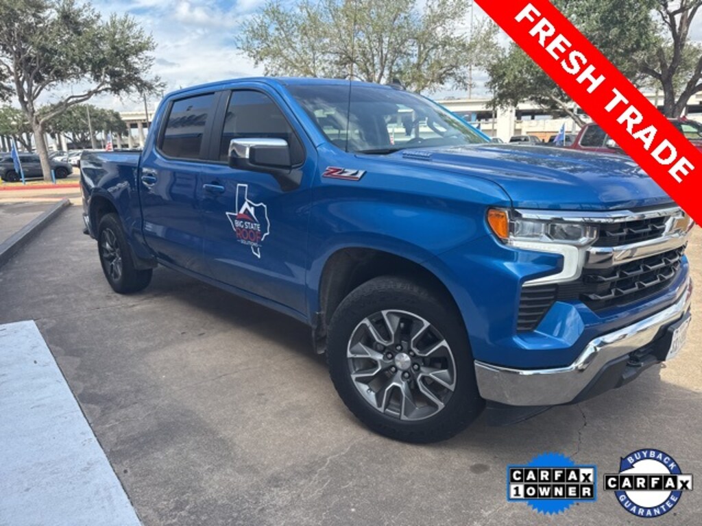 CARFAX One-Owner. Clean CARFAX. Glacier Blue Metallic 2023 Chevrolet Silverado 1500 LT LT1 4WD 10-Speed Automatic 3.0L I6 LOCAL TRADE, CARFAX 1 OWNER, CLEAN CARFAX, NON SMOKER, 4WD, NAVIGATION, KEYLESS ENTRY, REMOTE START, APPLE CARPLAY, ANDROID AUTO, SIRIUS XM RADIO, ON STAR, AM/FM/HD RADIO, BLUETOOTH HANDS FREE CALLING, FRONT USB CHARGING PORTS, MP3 IPOD COMPATIBLE, AUTO HEADLIGHTS, DAYTIME RUNNING LIGHTS, BLIND SPOT WARNING SYSTEM, REAR TRAFFIC ALERT, LANE DEPARTURE WARNING SYSTEM, POWER ADJUSTABLE DRIVERS SEAT, RUNNING BOARDS, TOW PKG, 10-Speed Automatic, 4WD, Black Cloth, 10-Way Power Driver Seat w/Lumbar, 12.3" Multicolor Reconfigurable Digital Display, 120-Volt Bed Mounted Power Outlet, 120-Volt Instrument Panel Power Outlet, All-Star Edition, All-Weather Floor Liner (LPO) (AAK), Auto-Locking Rear Differential, Bluetooth® For Phone, Chevrolet Connected Access Capable, Chevytec Spray-On Black Bedliner, Chrome Mirror Caps, Color-Keyed Carpeting Floor Covering, Compass, Convenience Package, Deep-Tinted Glass, Dual Exhaust w/Polished Outlets, Dual Rear USB Ports (Charge Only), Dual-Zone Automatic Climate Control, Electric Rear-Window Defogger, Electrical Steering Column Lock, Electronic Cruise Control, EZ Lift Power Lock & Release Tailgate, Front Frame-Mounted Black Recovery Hooks, Front Rubberized Vinyl Floor Mats, HD Rear Vision Camera, Heated Driver & Front Outboard Passenger Seats, Heated Power-Adjustable Outside Mirrors, Heated Steering Wheel, Heavy-Duty Air Filter, Hill Descent Control, Hitch Guidance, Inside Rear-View Mirror w/Tilt, Keyless Open & Start, LED Cargo Area Lighting, Off-Road Suspension, OnStar & Chevrolet Connected Services Capable, Power Front Windows w/Driver Express Up/Down, Power Front Windows w/Passenger Express Down, Power Rear Windows w/Express Down, Preferred Equipment Group 1LT, Protection Package, Rear 60/40 Folding Bench Seat (Folds Up), Rear Rubberized-Vinyl Floor Mats, Rear Wheelhouse Liners, Remote Start Package, Remote Vehicle Starter System, SiriusXM w/360L, Standard Suspension Package, Standard Tailgate, Steering Wheel Audio Controls, Theft Deterrent System (Unauthorized Entry), Trailering Package, Wheels: 18" x 8.5" Bright Silver Painted Aluminum, Wi-Fi Hot Spot Capable, Wireless Phone Projection, Wrapped Steering Wheel, Z71 Off-Road & Protection Package, Z71 Off-Road Package.