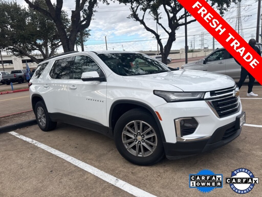 CARFAX One-Owner. Clean CARFAX. Summit White 2023 Chevrolet Traverse LT 1LT FWD 9-Speed Automatic 3.6L V6 SIDI VVT LOCAL TRADE, CARFAX 1 OWNER, CLEAN CARFAX, NON SMOKER, KEYLESS ENTRY, REMOTE START, APPLE CARPLAY, ANDROID AUTO, SIRIUS XM RADIO, AM/FM/HD RADIO, BLUETOOTH HANDS FREE CALLING, FRONT USB CHARGING PORTS, MP3 IPOD COMPATIBLE, AUTO HEADLIGHTS, DAYTIME RUNNING LIGHTS, LANE DEPARTURE WARNING SYSTEM, POWER ADJUSTABLE DRIVERS SEAT, 1st & 2nd Row All-Weather Floor Liner (LPO), 3rd Row All-Weather Floor Liner (LPO), 4.2" Multi-Color Enhanced Driver Instrument Display, Convenience & Driver Confidence Package, Floor Liner Package (LPO), Front License Plate Bracket Mounting Package, Heated Driver & Front Passenger Seats, Integrated Cargo Liner (LPO), Preferred Equipment Group 1LT, Radio: Chevrolet Infotainment 3 Plus System, Rear Power Liftgate, Remote Start, SiriusXM w/360L, Universal Home Remote.