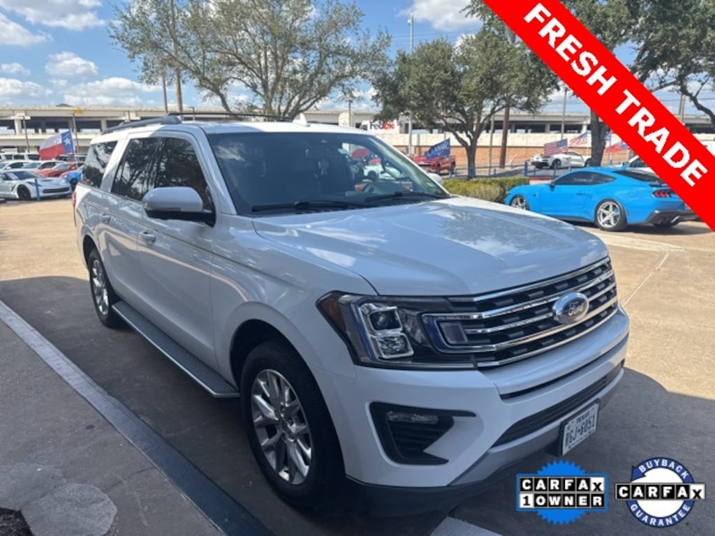 CARFAX One-Owner. Clean CARFAX. Oxford White 2021 Ford Expedition Max XLT RWD 10-Speed Automatic EcoBoost 3.5L V6 GTDi DOHC 24V Twin Turbocharged LOCAL TRADE, CARFAX 1 OWNER, CLEAN CARFAX, NON SMOKER, NAVIGATION, KEYLESS ENTRY, REMOTE START, APPLE CARPLAY, ANDROID AUTO, SIRIUS XM RADIO, AM/FM/HD RADIO, BLUETOOTH HANDS FREE CALLING, FRONT USB CHARGING PORTS, REAR USB CHARGING PORTS, MP3 IPOD COMPATIBLE, AUTO HEADLIGHTS, DAYTIME RUNNING LIGHTS, BLIND SPOT WARNING SYSTEM, REAR TRAFFIC ALERT, LANE DEPARTURE WARNING SYSTEM, POWER ADJUSTABLE DRIVERS SEAT, POWER ADJUSTABLE PASSENGER SEAT, HEATED SEATS, LEATHER INTERIOR, 2ND ROW CAPTAINS CHAIRS, 7 PASSENGER SEATING, RUNNING BOARDS, TOW PKG, 110V/150W AC Power Outlet, 2 Smart Charging USB-A Ports In 3rd Row, 2nd Row 40/20/40 Tip & Slide Seat, 3rd Row Power-Folding Head Restraints, 3rd Row Vinyl Seat, 4-Door Intelligent Access (Lock/Unlock), ActiveX-Trimmed 1st & 2nd Row Seats, Adaptive Cruise Control, Advanced Security Pack, Black Roof Rail Crossbars, Cargo Package, Chrome Platform Running Boards, Equipment Group 202A High Package, Ford Co-Pilot360 Assist, Heated Steering Wheel, Heated/Ventilated Front Seats, Instrument Panel Cluster, Power Liftgate, Power Tilt/Telescopic Steering Wheel w/Memory, Power-Folding Sideview Mirrors w/Autofold, Remote Start, Santa Cruz Vinyl-Wrapped Center Console Side Rails, SecuriCode Keyless Entry Pad, Voice-Activated Touch-Screen Navigation System, Wireless Charging Pad.