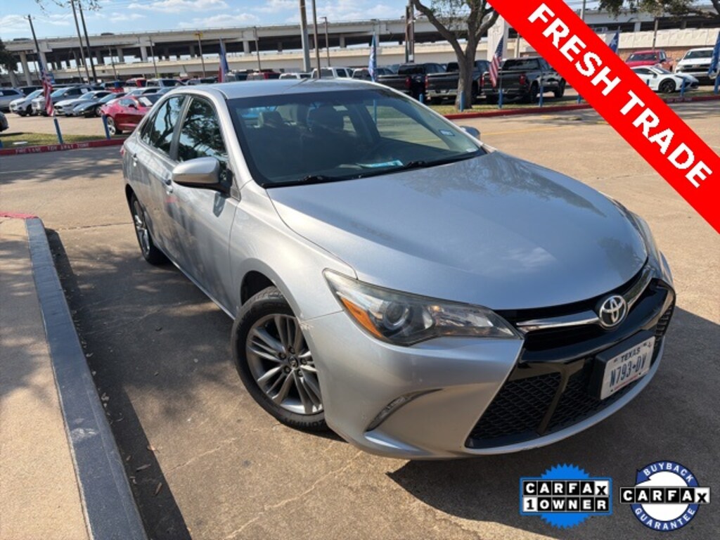 CARFAX One-Owner. Clean CARFAX. Celestial Silver Metallic 2015 Toyota Camry SE FWD 6-Speed Automatic 2.5L I4 SMPI DOHC LOCAL TRADE, CARFAX 1 OWNER, CLEAN CARFAX, NON SMOKER, KEYLESS ENTRY, REMOTE START, APPLE CARPLAY, ANDROID AUTO, SIRIUS XM RADIO, AM/FM/HD RADIO, BLUETOOTH HANDS FREE CALLING, FRONT USB CHARGING PORTS, MP3 IPOD COMPATIBLE, AUTO HEADLIGHTS, DAYTIME RUNNING LIGHTS, POWER ADJUSTABLE DRIVERS SEAT, Black w/Sport Fabric Softex-Trimmed Front Seat Trim.